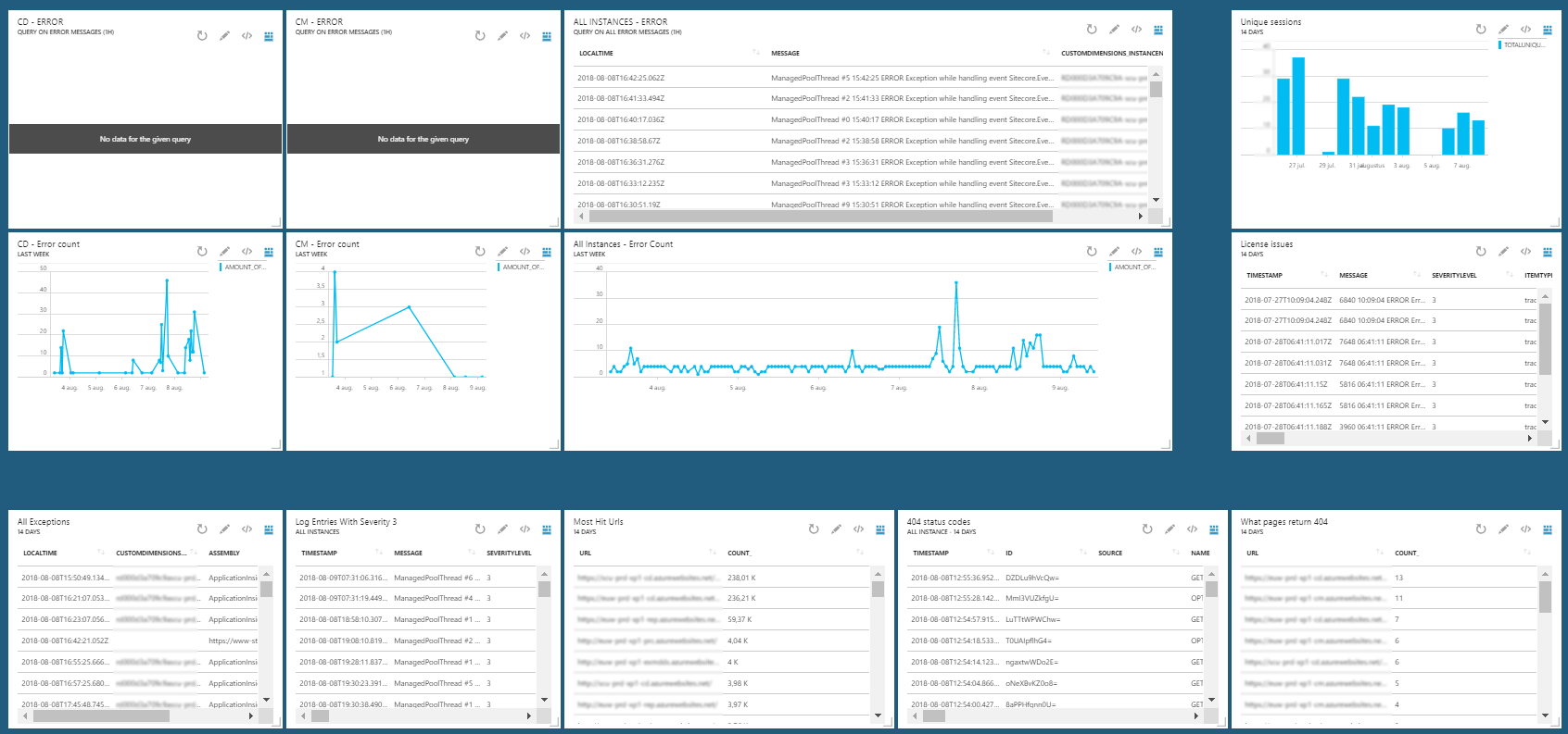 First I will give you a screenshot of the current dashboard we are using to check our Sitecore production environment and keeping it running smooth: