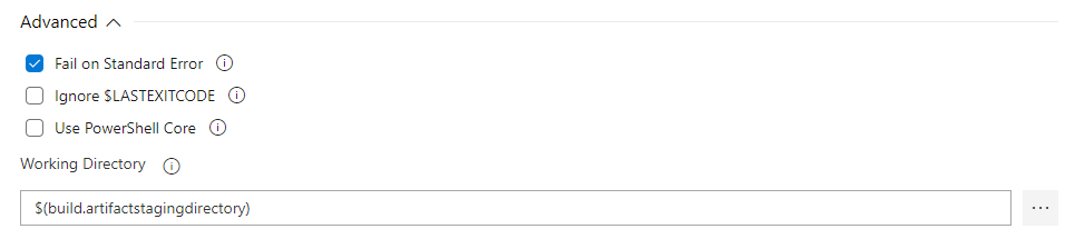 Now add a subsequent Powershell task, run it inline and add the following script: