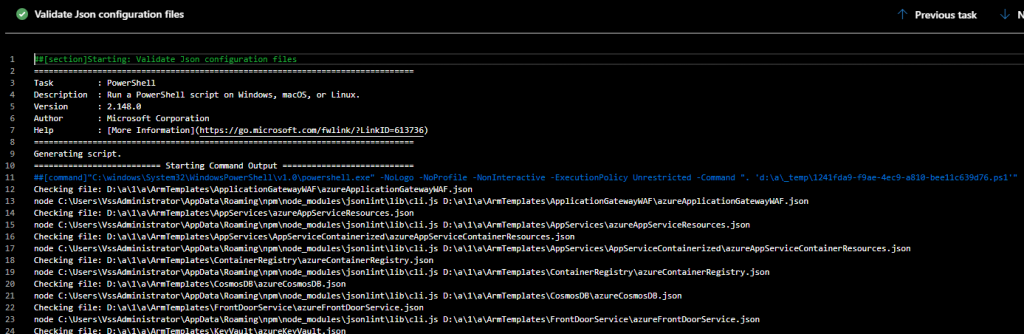 While working with ARM templates and Azure DevOps it definitely adds value to validate all your Json files during build. This might save you a lot of time. To implement this you could setup the following tasks within your build pipeline: